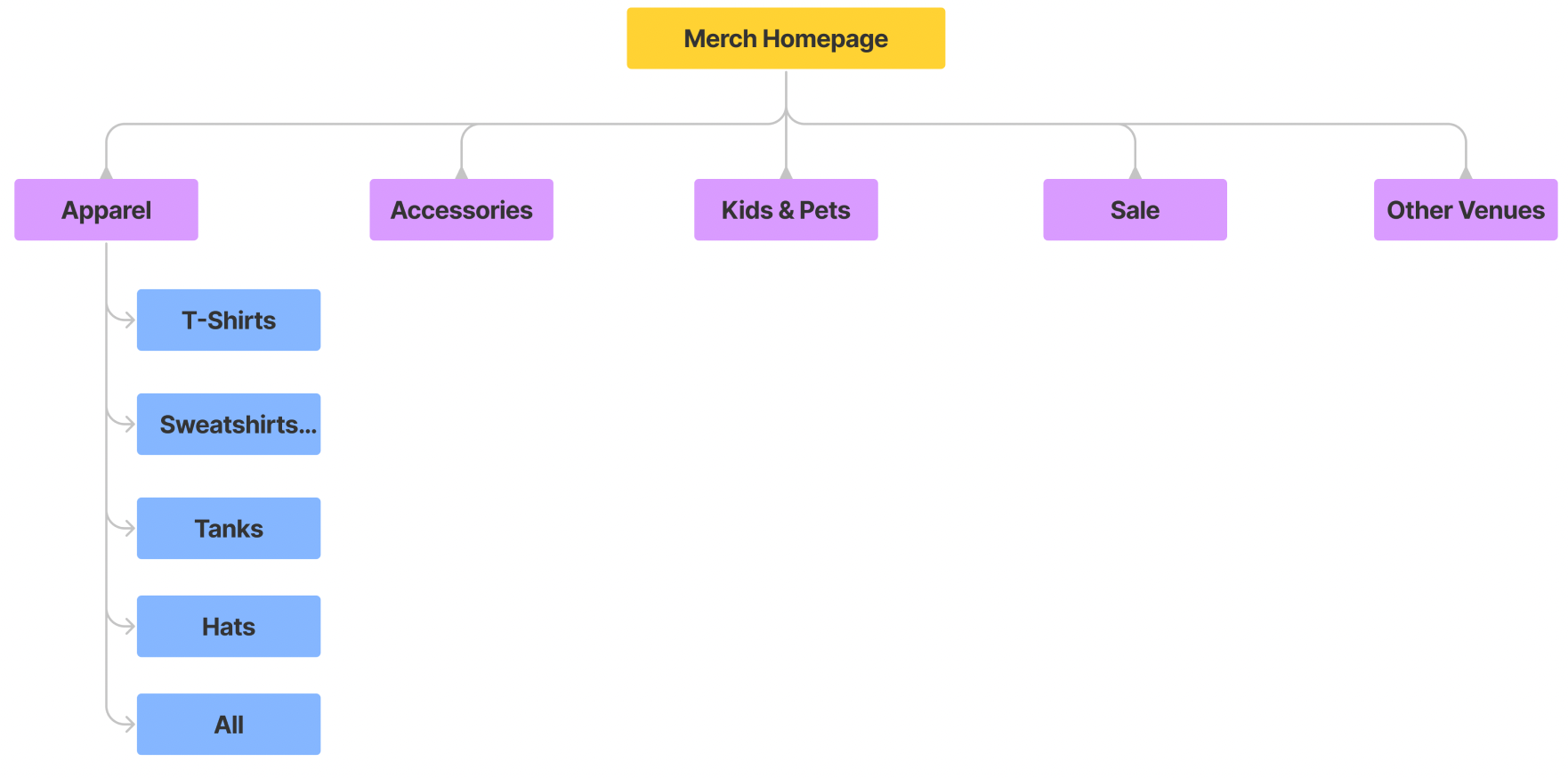Going back to the current site map, I wondered what a better navigation would look like. To understand this I asked participants to categorize and label all of the 9:30 Club’s products in Optimal Workshop.